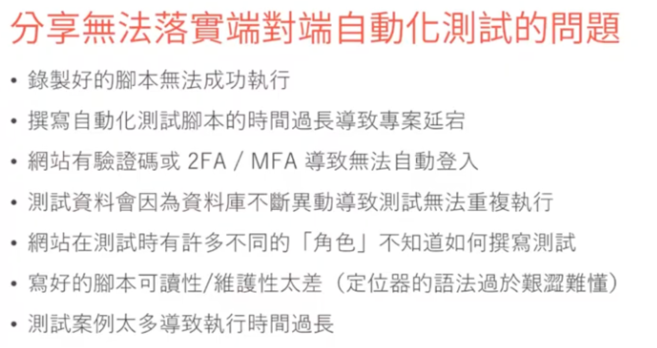 在自動化測試中,如果每個 Test Case 都要重走一遍登入,會導致: