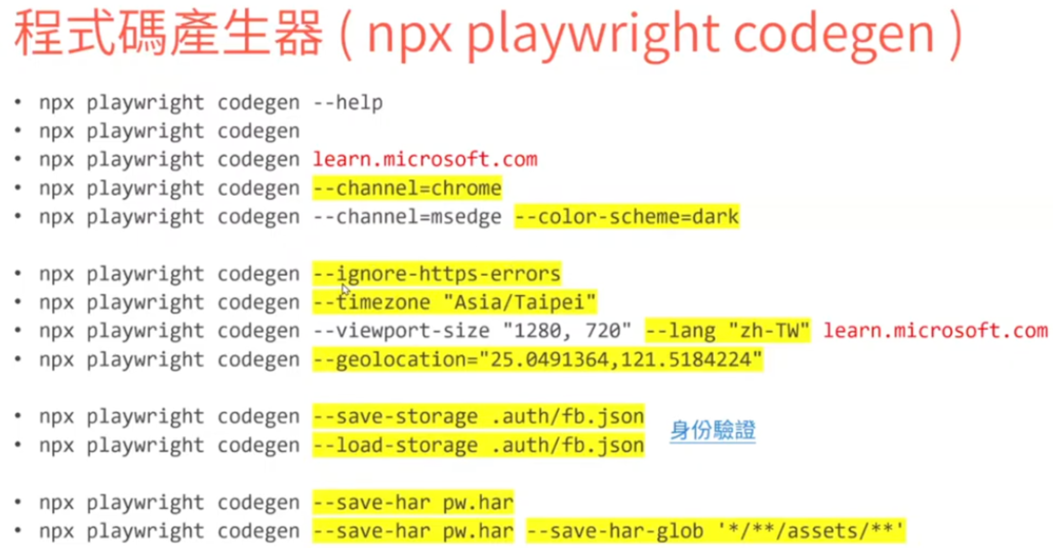 - codegen:透過錄製操作來生成腳本