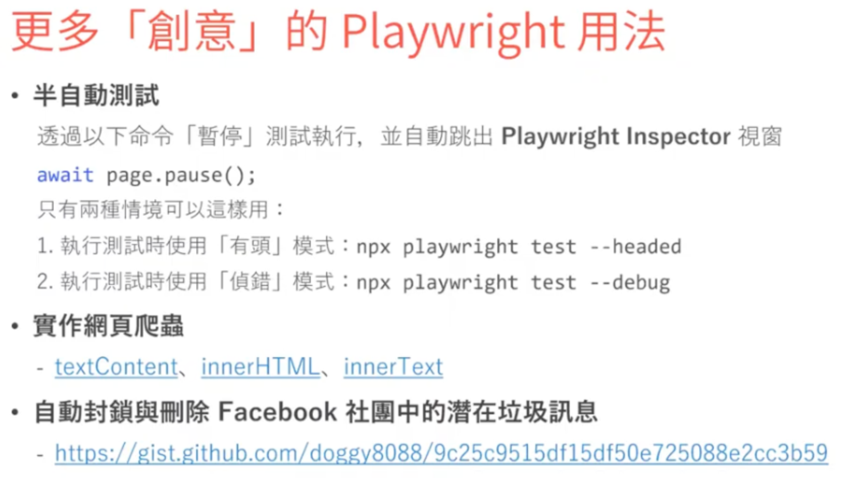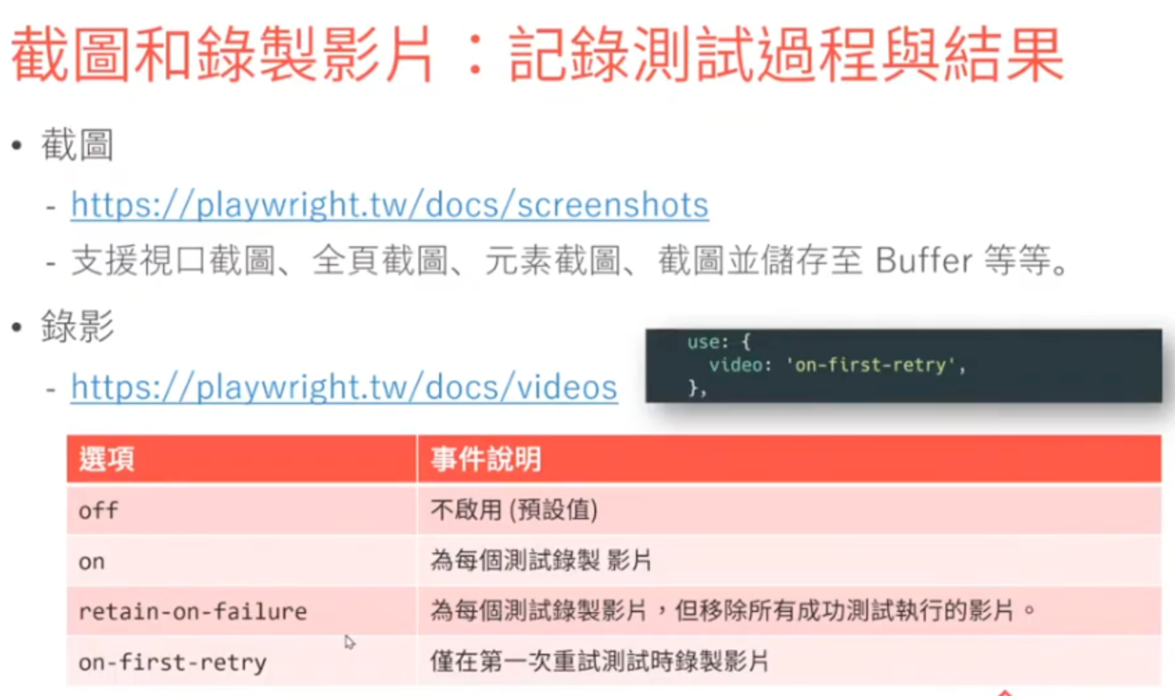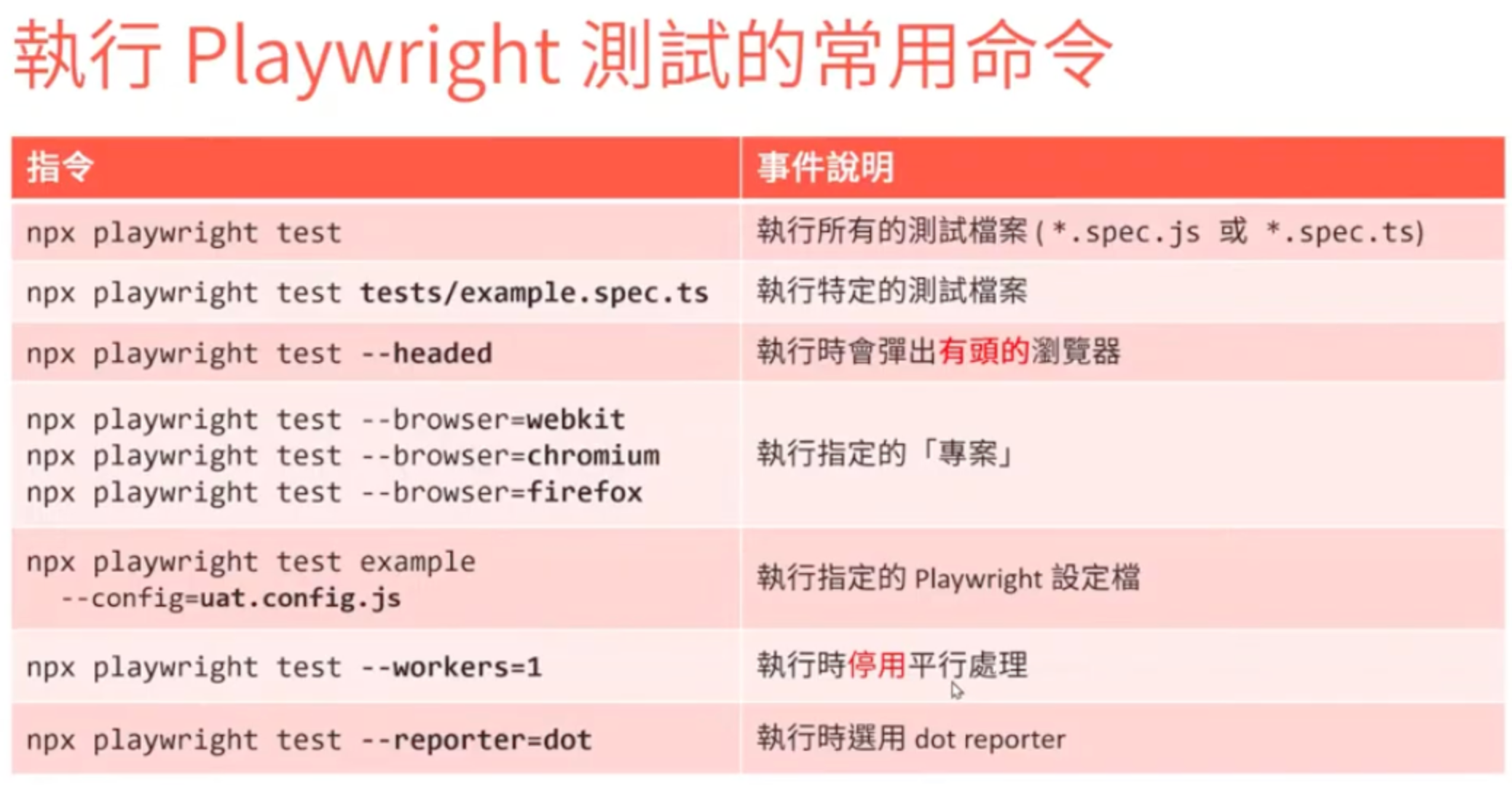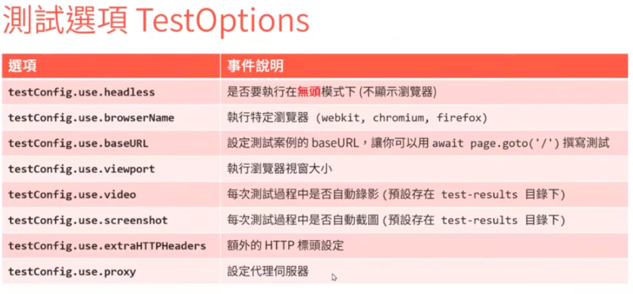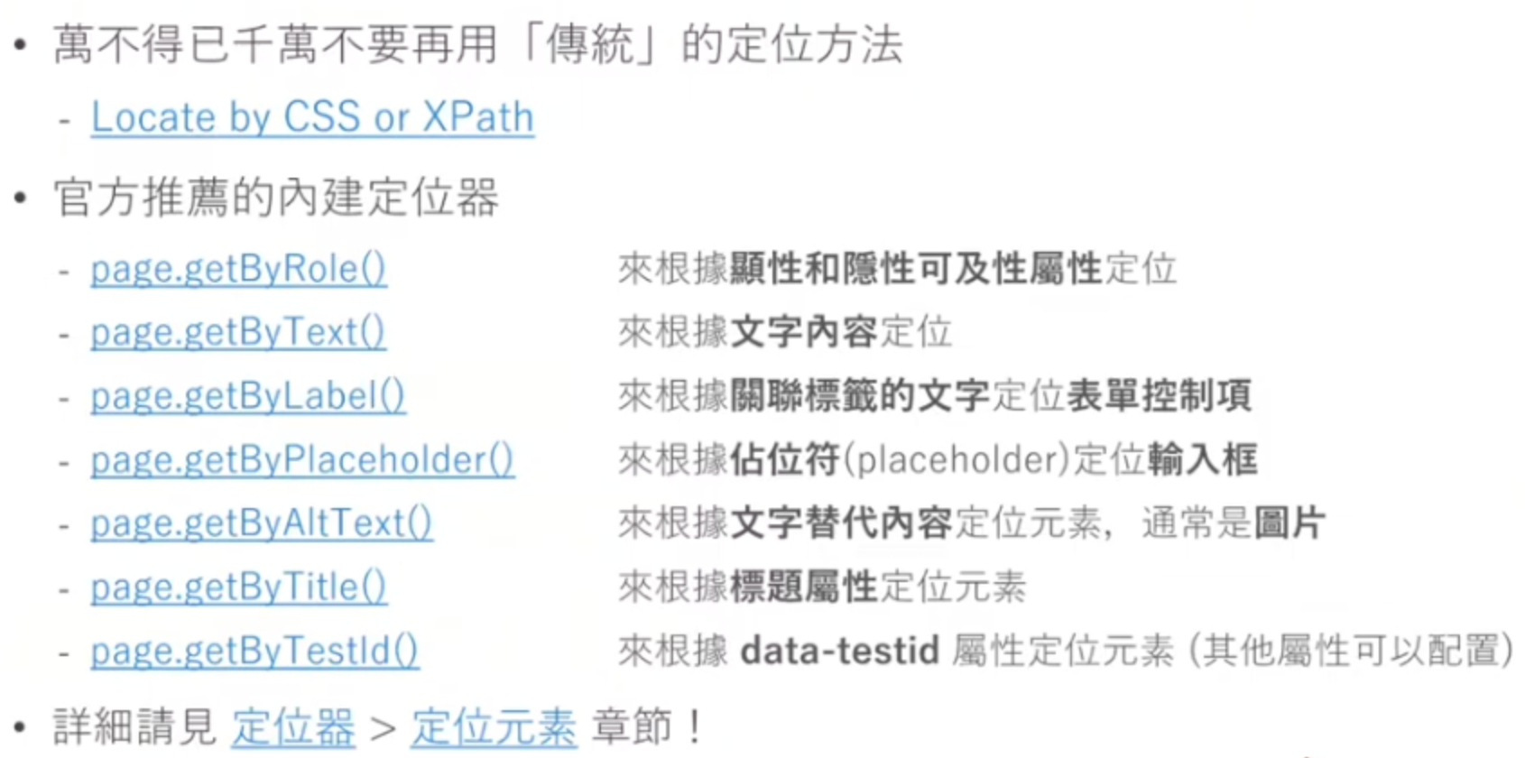 - 需重視 Accecibility,無障礙屬性在 playwright 來說可以是個很準確的定位點。
